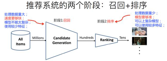 四个环节分别是:召回、粗排、精排和重排。召回目的如上所述。有时候因为每个用户召回环节都有多路召回算法,这会产生两个问题: