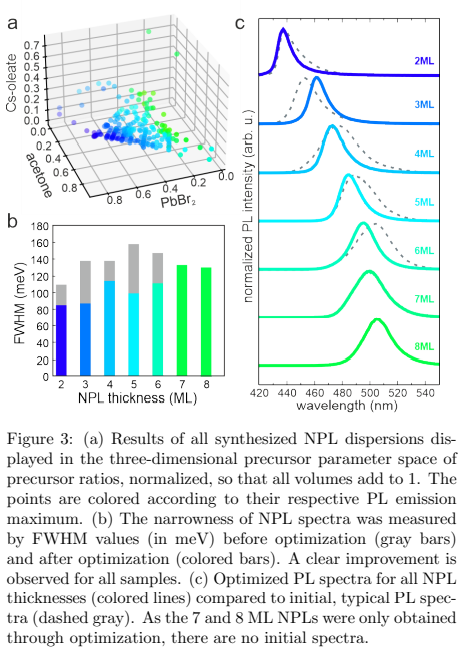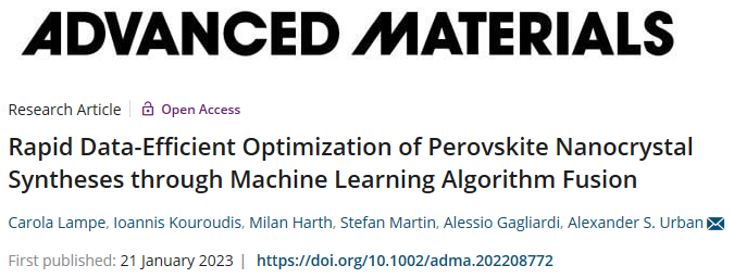 随着对可再生能源和高效器件的需求迅速增加,需要寻找和优化新型(纳米)材料。凭借材料组合和合成程序的无限可能性,获得新颖、功能强大的材料一直是一个乏味的反复试验过程。最近,机器学习已成为帮助优化合成的强大工具;然而,大多数方法都需要大量的输入数据,从而限制了它们的针对性。鉴于此,2023年1月21日慕尼黑纳米研究所Alexander S. Urban团队于AM刊发通过机器学习算法融合快速数据高效优化钙钛矿纳米晶合成的研究成果,将三个著名的机器学习模型与贝叶斯优化合并为一个以在数据需求有限的情况下优化CsPbBr3纳米片的合成。该算法可以仅使用三个前体比率作为输入参数来准确预测纳米片分散体的光致发光发射最大值。这使能够制造以前无法获得的7和8个单层厚度的纳米片。此外,该算法显著提高了2-6层单层厚纳米片分散体的均匀性,更窄和更对称的光致发光光谱证明了这一点。决定性的是,实现这一巨大改进只需要200次总合成,突显了材料性能优化的速度有多快。该算法用途广泛,可以包含额外的合成参数。因此,它很容易应用于其他探索较少的纳米晶体合成,并有助于快速识别和提高令人兴奋的组合物的质量。https://onlinelibrary.wiley.com/doi/10.1002/adma.202208772NREL网站:https://www.nrel.gov/pv/cell-efficiency.htmlGratzel课题组网站:http://lpi.epfl.ch/publicationsSnaith课题组网站:https://www2.physics.ox.ac.uk/contacts/people/snaith/publications