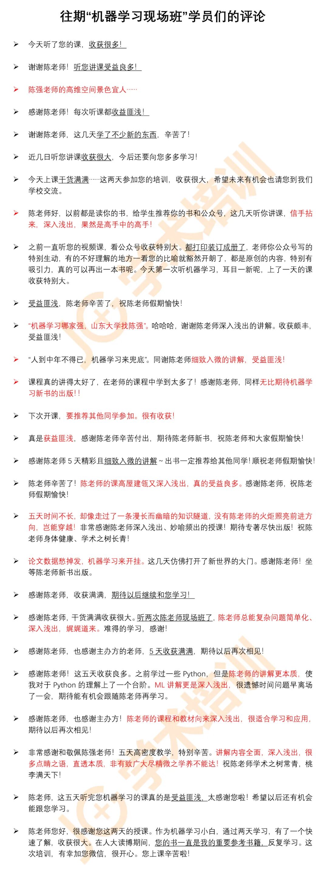 机器学习现场班(5天):6000元 /5400元(全日制在读本科和硕士优惠价)