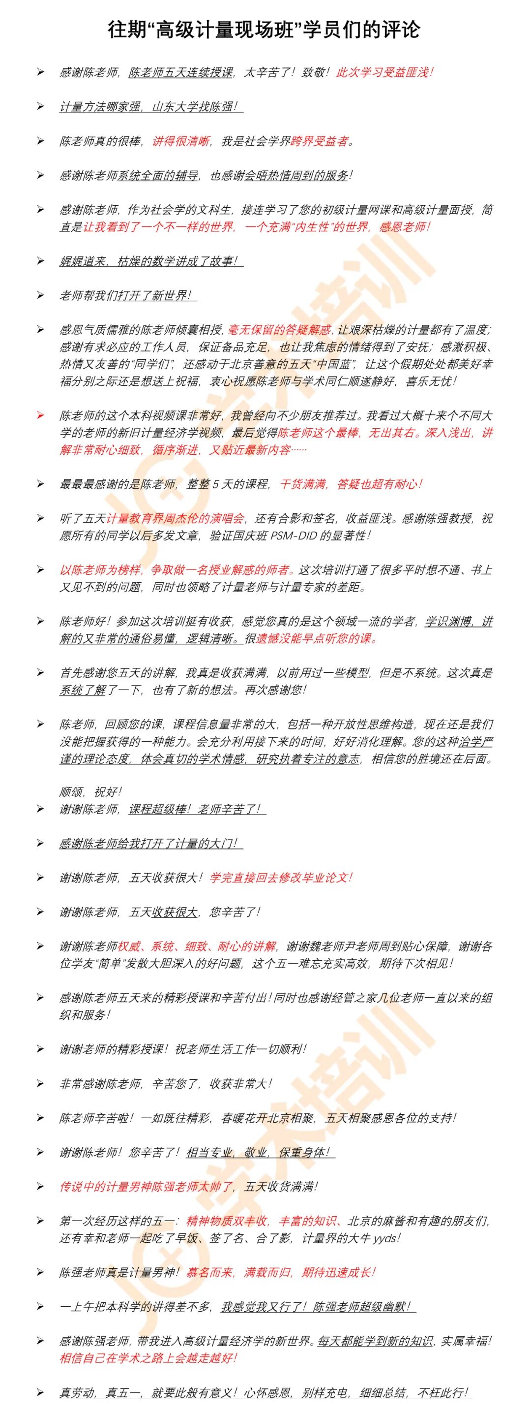 陈强老师开设现场班以来,每期课程都收获了不少好评: