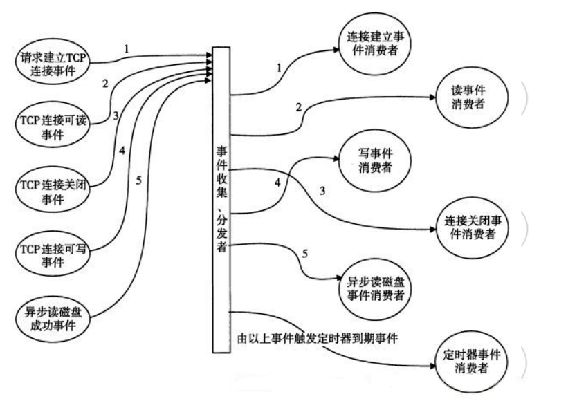 上面提到的异步非阻塞机制,Nginx是通过基于事件的驱动模型来实现的。这个模型下,客户端发起的所有请求在服务端都会被标记为一个事件,Nginx会把这些事件收集到“事件收集器”里,然后再把这些事件交给内核去处理。