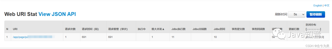 - URL监控页面,统计了所有Controller接口的访问以及执行情况