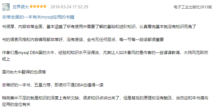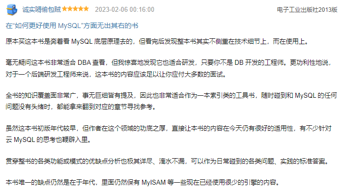 也有人说它是“在‘如何更好使用 MySQL’方面无出其右的书”!