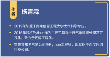 浓郁的学术氛围孕育出了三位莘莘学子,也为本书培养了最出色的作者团队。其中,杨效业与张诗悦均为南信大气象学博士在读,杨青霖毕业于南信大大气科学专业,目前就职于百度。三人不仅都具备气象学的学术背景,更是在工作和学习中经常使用Python处理数据,这为他们联合著书提供了基础。