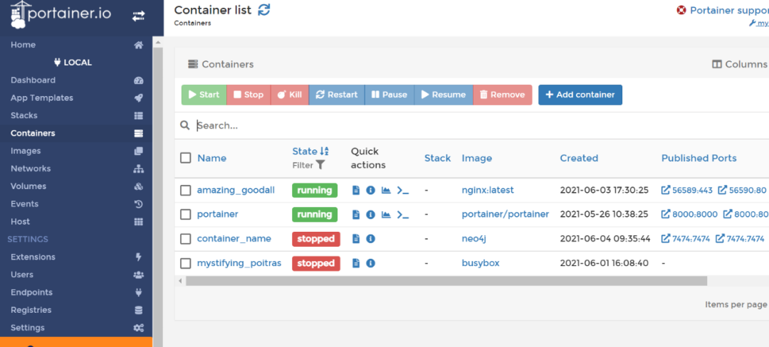 如果你是一个命令行控,可以直接使用WSL终端提供的docker命令进行操作。但如果你对docker并不是非常熟悉,那么就可以使用portainer实现对Docker的管理。