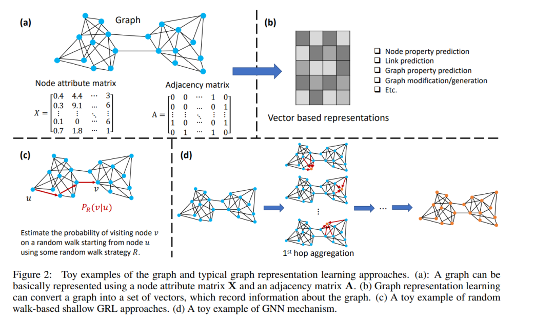 然而,传统的AI工具很难处理复杂的图结构数据。机器学习模型使用的特征提取器通常是不可迁移的,需要为每个特定的数据集和任务手动设计。尽管深度学习模型[24,25,26]具有从原始数据中学习的能力,但它们处理复杂图结构的能力仍然有限。为此,人们提出了一类新的人工智能方法——图机器学习(GML)来研究图结构数据。GML的基本思想是学习节点(如DDI网络中的药物)、边(如药物-药物或药物-疾病之间的关系或相互作用)或(子)图(如分子图)[27]的有效特征表示。这些对应的节点、边缘和(子)图级下游任务可以基于这些学习到的表示来实现。根据表示学习机制的不同,GML方法可以大致分为"浅层"和"深层"两类。特别是,一种称为图神经网络(GNNs)的深度GML方法[28,29,30,31,32],这是专门为图结构数据设计的深度神经网络架构,正在吸引越来越多的兴趣。gnn通过传播邻近节点的信息来迭代更新图节点的特征。这些方法已经成功应用于一系列任务和领域,包括药物发现[16,33,34]。