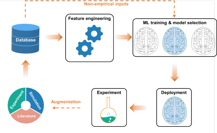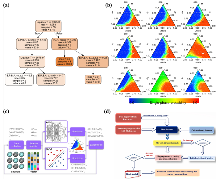 高熵陶瓷机器学习流程主要包括数据集收集、特征工程、模型训练与选择、模型部署、实验验证和数据集补充。若使用非经验输入特征,可跳过特征工程步骤。