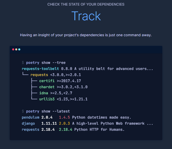 Poetry 是一个改变游戏规则的开源 Python 打包和依赖管理框架。在最简单的用例中,Poetry 可以在安装库之前检测依赖冲突,以便您可以完全避免依赖冲突。