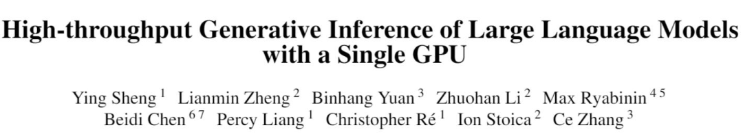 计算成本是人们打造 ChatGPT 等大模型面临的重大挑战之一。据统计,从 GPT 进化到 GPT-3 的过程也是模型体量增长的过程 —— 参数量从 1.17 亿增加到了 1750 亿,预训练数据量从 5GB 增加到 45TB,其中 GPT-3 训练一次的费用是 460 万美元,总训练成本达 1200 万美元。除了训练,推理也很花钱。有人估算,现在 OpenAI 运行 ChatGPT 的算力费用每天就有 10 万美元。在发展技术,让大模型掌握更多能力的同时,也有人在尝试降低 AI 所需的算力资源。最近,一种名为 FlexGen 的技术因为「一块 RTX 3090 跑 ChatGPT 体量模型」而获得了人们的关注。虽然 FlexGen 加速后的大模型看起来仍然很慢 —— 跑 1750 亿参数的语言模型时每秒 1 个 token,但令人印象深刻的是,它已经把不可能变成了可能。传统上,大语言模型(LLM)推理的高计算和内存要求使人们必须使用多个高端 AI 加速器进行训练。本研究探索了如何将 LLM 推理的要求降低到一个消费级 GPU 并实现实用性能。近日,来自斯坦福大学、UC Berkeley、苏黎世联邦理工学院、Yandex、莫斯科国立高等经济学院、Meta、卡耐基梅隆大学等机构的新研究提出了 FlexGen,这是一种用于运行有限 GPU 内存的 LLM 的高吞吐量生成引擎。通过聚合来自 GPU、CPU 和磁盘的内存和计算,FlexGen 可以在各种硬件资源限制下灵活配置。通过线性规划优化器,它搜索存储和访问张量的最佳模式,包括权重、激活和注意力键 / 值(KV)缓存。FlexGen 将权重和 KV 缓存进一步压缩到 4 位,精度损失低到可以忽略不计。与最先进的 offloading 系统相比,FlexGen 在单个 16GB GPU 上运行 OPT-175B 的速度提高了 100 倍,并首次实现了 1 token/s 的实际生成吞吐量。如果提供了更多的分布式 GPU,FlexGen 还带有流水线并行 runtime,以允许在解码时进行超线性扩展。目前,该技术已经放出代码,获得了几千 Star 量:https://github.com/FMInference/FlexGen近年来,大语言模型在广泛的任务中表现出卓越的性能。LLM 在展现出前所未有的通用智能的同时,也让人们在构建时面临着前所未有的挑战。这些模型可能有数十亿甚至数万亿个参数,这导致运行它们需要极高的计算和内存要求。例如,GPT-175B(GPT-3)仅用于存储模型权重就需要 325GB 的内存。要让此模型进行推理,至少需要五块英伟达 A100(80GB)和复杂的并行策略。降低 LLM 推理资源需求的方法是最近人们经常讨论的内容。这些努力分为三个方向:(3)Offloading 以利用 CPU 和磁盘的内存。这些技术显着降低了使用 LLM 的计算资源需求。然而,人们通常假设模型适合 GPU 内存,而现有的基于 offloading 的系统仍然难以使用单块 GPU 以可接受的吞吐量运行 1750 亿参数规模的模型。在新研究中,作者专注于高吞吐量生成推理的有效 offloading 策略。当 GPU 显存不够用时,我们需要将其卸载到二级存储,通过部分加载的方式,逐段进行计算。在典型的机器上,内存层次结构分为三级,如下图所示。高级内存速度快但稀缺,低级内存速度慢但充裕。在 FlexGen 中,作者不追求低延迟,而是瞄准面向吞吐量的场景,这些场景在基准测试、信息提取、数据整理等应用中很受欢迎。实现低延迟对于 offloading 来说本质上是一个挑战,但是对于面向吞吐量的场景,可以大大提高 offloading 的效率。图 1 说明了三个具有 offloading 的推理系统的延迟吞吐量权衡。通过仔细的调度,I/O 成本可以通过大量输入分摊并与计算重叠。在研究中,作者展示了就单位算力成本而言,单块消费级 GPU 吞吐量优化的 T4 GPU 效率要比云上延迟优化的 8 块 A100 GPU 的效率高 4 倍。