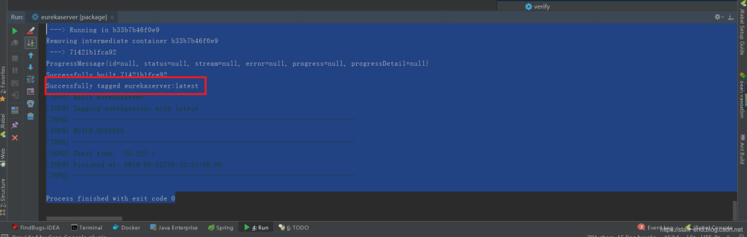 我们在docker窗口可以看到,我们的镜像库中多个一个eurekaserver:latest镜像。