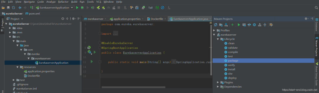 ② 找到项目启动类,添加@EnableEurekaServer注解
