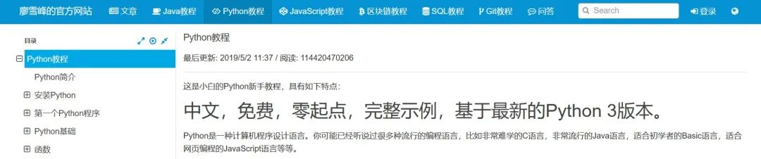 1. 耳熟能详的Python自学网站:廖雪峰python学习网站