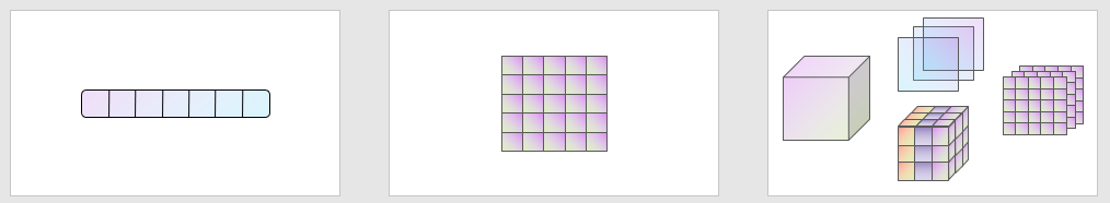 这套画图模板首先提供了多种基础组件,比如表示过程、操作或转换的圆角矩形,表示神经元或任意操作的小圆圈,表示向量的一排小方块以及表示多维数组的网格等。