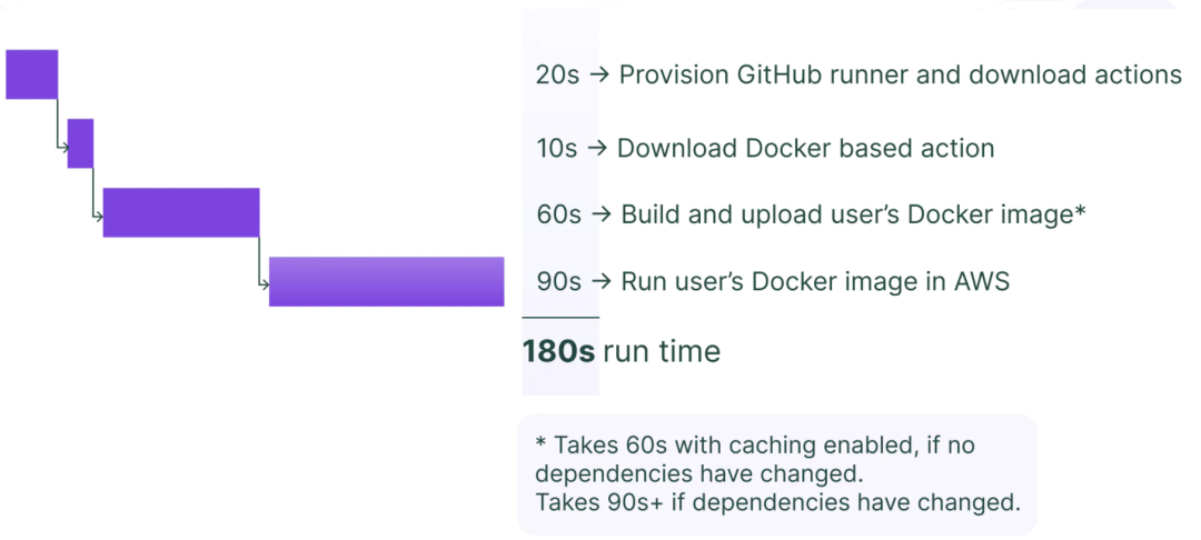 关于启动 Docker 容器需要注意的是,我们使用 AWS Fargate,它需要45到90秒的时间来配置和启动一个镜像。且不提供任何图像缓存。启动一个新的容器会从注册表中下载所有的层到配置的容器上。