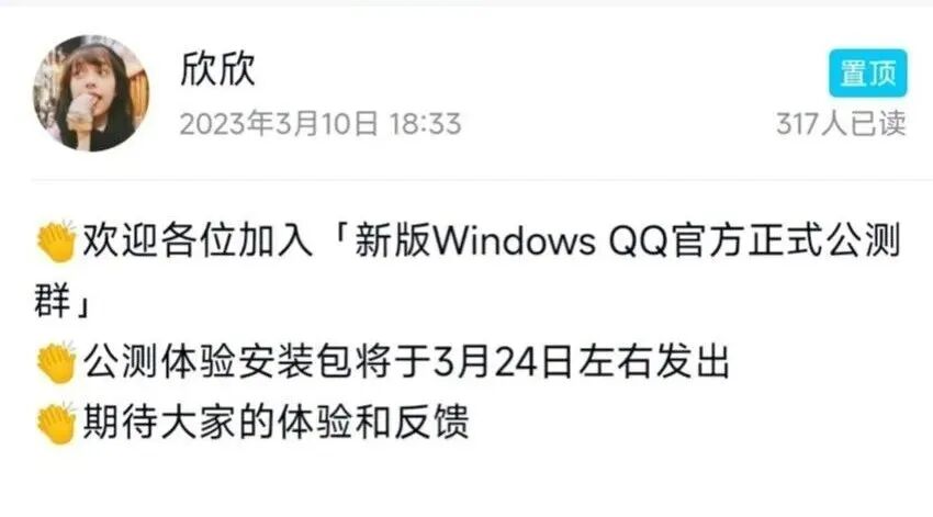 2、考试中击败 90% 的人类!GPT 升级了:更可靠、更有创造力当地时间周二(3月14日),人工智能研究公司OpenAI公布了其大型语言模型的最新版本——GPT-4。该公司表示,GPT-4 在许多专业测试中表现出超过绝大多数人类的水平。OpenAI 还称,GPT-4 参加了多种基准考试测试,包括美国律师资格考试 Uniform Bar Exam、法学院入学考试LSAT、“美国高考”SAT 数学部分和证据性阅读与写作部分的考试,在这些测试中,它的得分高于 88% 的应试者。腾讯官方在公测群中的公告,新版 Windows QQ 公测体验安装包将于 3 月 24 日左右发出。据报道,腾讯 QQ 此前已经对 macOS 版和 Linux 版进行了全新升级,用上了 QQ NT 架构,目前来看为基于 Electron 开发,对性能的要求高了一些,不过好处在于多端统一,减少了开发成本。