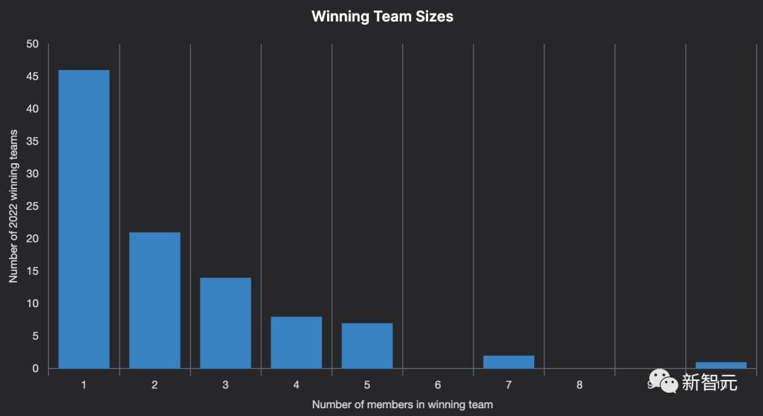 令人印象深刻的是,几乎一半的获胜「团队」都只有一个人。