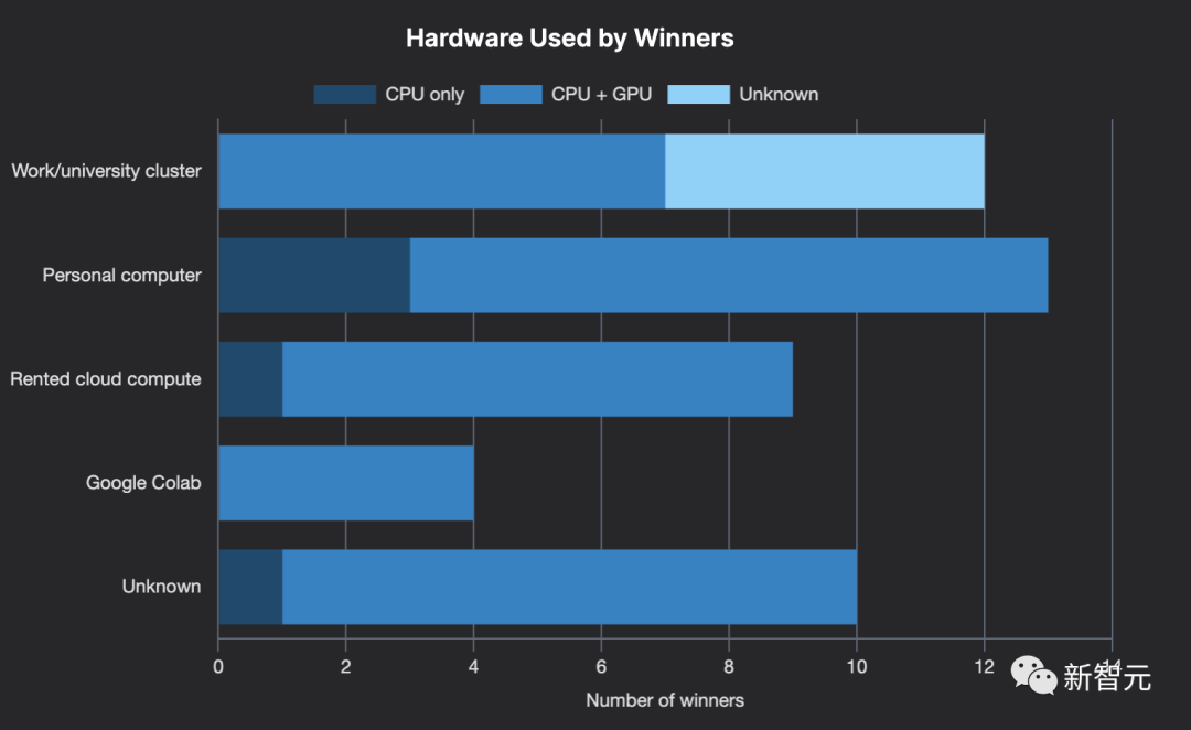令人惊讶的是,我们没有发现任何获奖者使用谷歌的张量处理单元(TPU),同时也没有看到有获胜者提到Apple Silicon。