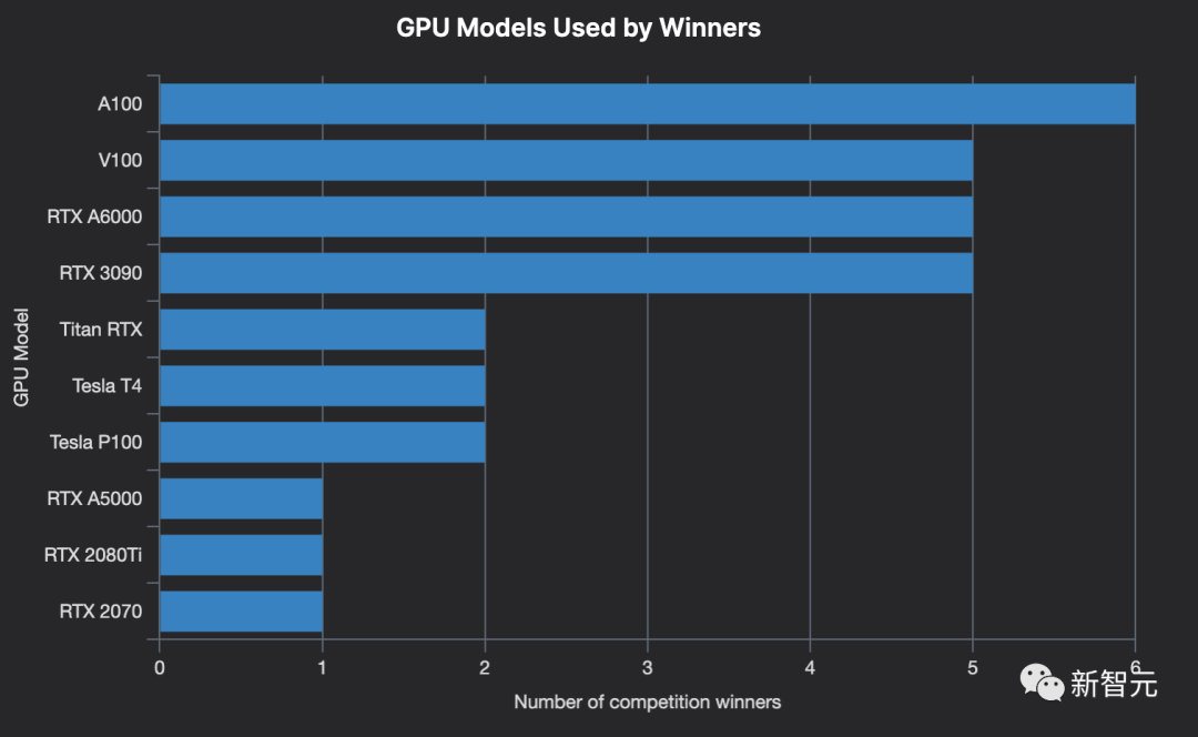 获胜者使用了10种不同的GPU模型进行训练,都是NVIDIA GPU。虽然PyTorch在2021年增加了对AMD的ROCm平台的支持,但AMD的GPU在深度学习方面仍然滞后。