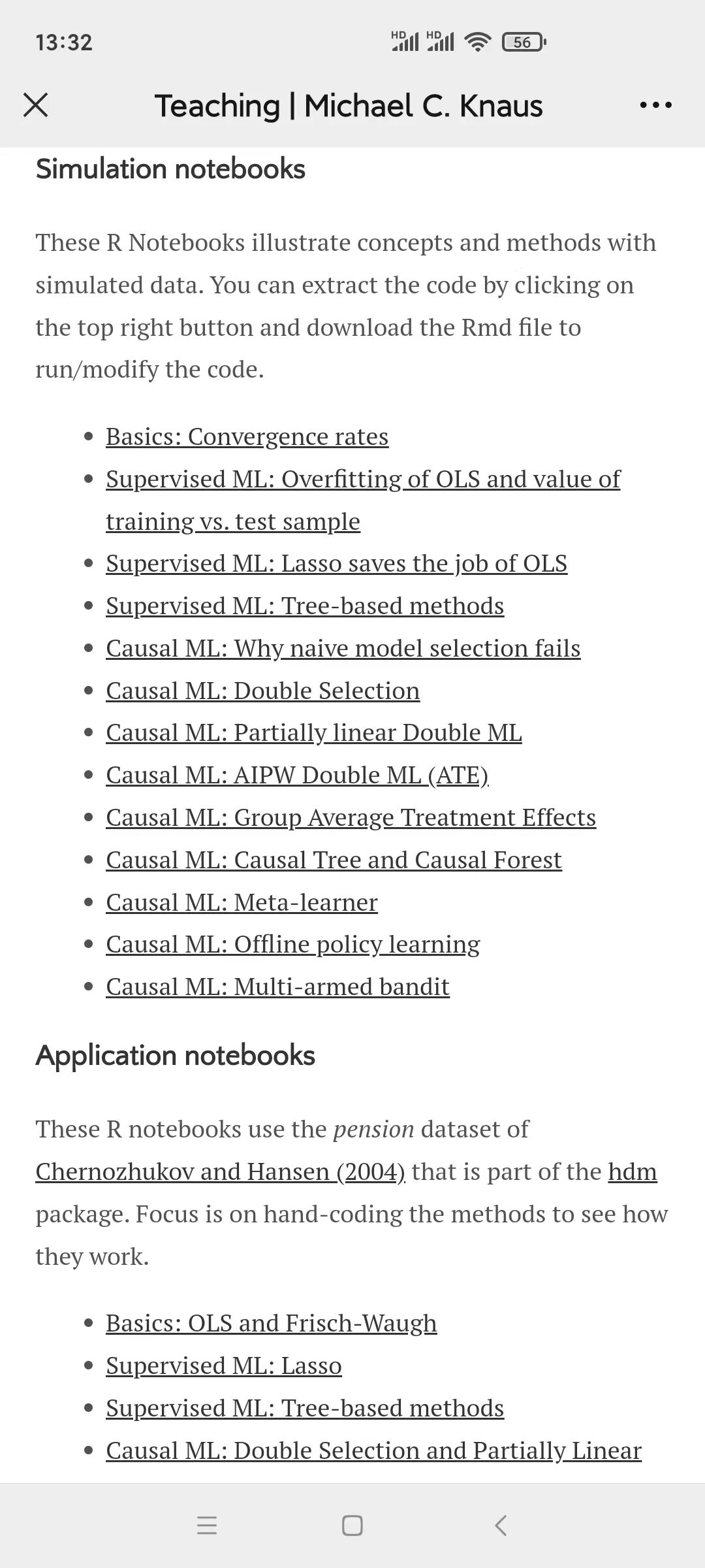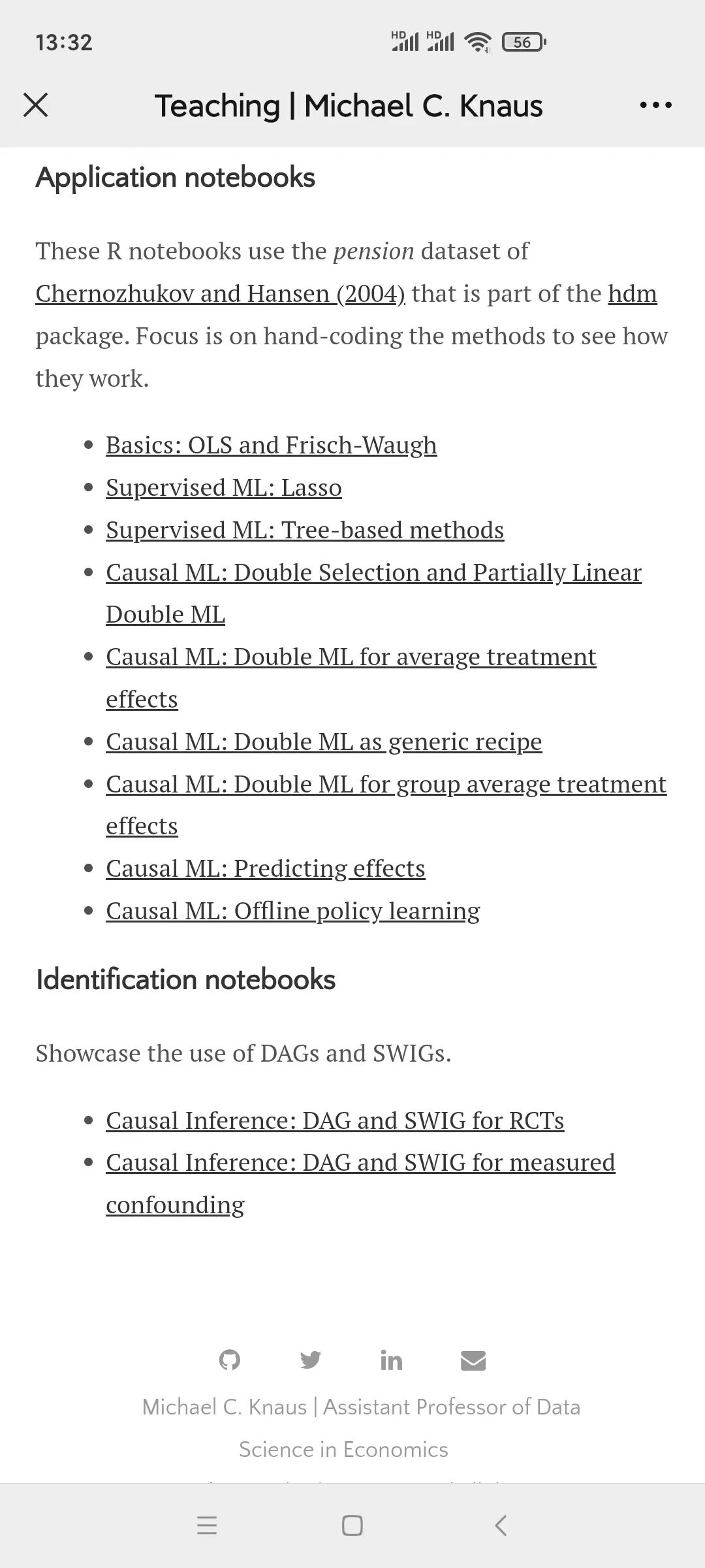 这里整合了Knaus教授给他的硕士和博士生教授的几门“因果机器学习”课程的材料,重点关注的是政策影响/项目评估。它里面包括10份Slides,对应着因果机器学习的十个主题,22份R notebooks。