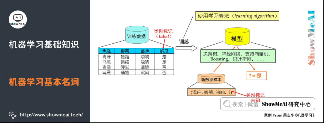 图解机器学习算法系列 以图解的生动方式,阐述机器学习核心知识 & 重要模型,并通过代码讲通应用细节。本文为系列第1篇,梳理机器学习最常见的知识要点。(授权来源:ShowMeAI)