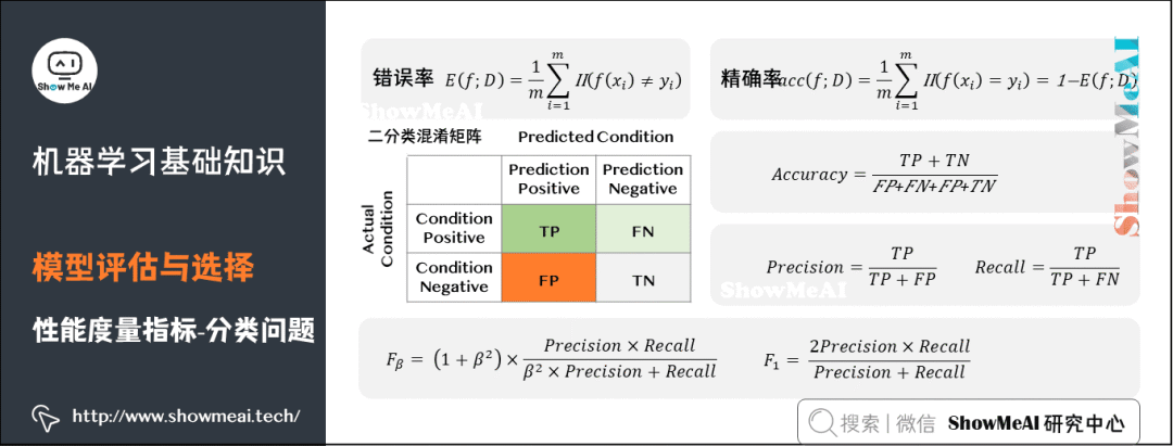 性能度量是衡量模型泛化能力的数值评价标准,反映了当前问题(任务需求)。使用不同的性能度量可能会导致不同的评判结果。更详细的内容可见 模型评估方法与准则(链接见文末)。