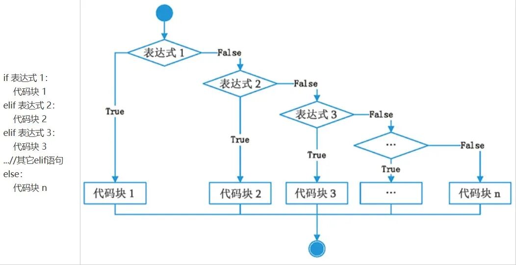 2. else 本身是一条包罗万象的语句,只要不满足任何if或elif中的条件测试,其中的代码就会执行,但是我们往往不建议直接设置else,因为这样就有可能给程序一个兜底选项,容易导致不必要的错误发生