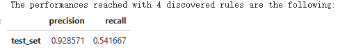 print('The performances reached with '+str(n_rule_chosen)+' discovered rules are the following:') compute_performances_from_y_pred(y_test, y_pred, 'test_set')