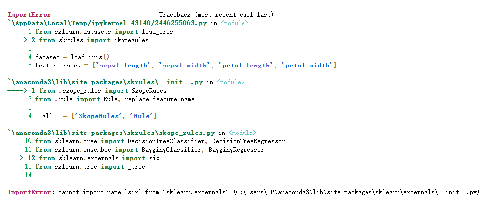 关于 Python 导入错误 : cannot import name 'six' from 'sklearn.externals' ,云朵君在Stack Overflow上找到一个类似的问题:https://stackoverflow.com/questions/61867945/