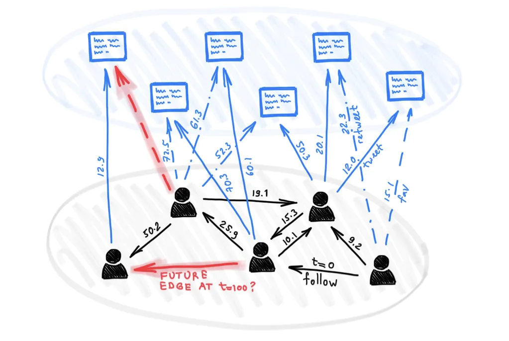 像 Twitter 这样的社交网络就是超大图的实例,节点是用户和推文的模型,边则是回复、转发和喜欢等互动的模型。