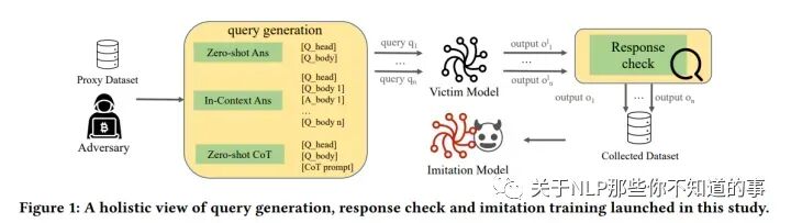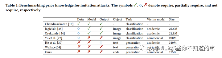 窃取对象不同: 我们专注于用中等规模的模型去窃取大模型的部分能力,而大部分工作的victim和imitation model是相近规模的