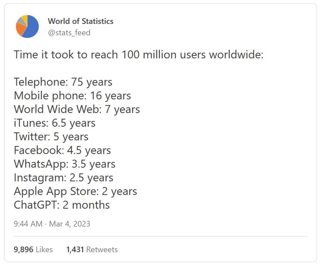 最后一个问题特别有趣,我认为这取决于速度和适应力。Google、Apple、Meta 和微软的用户量都超过了 ChatGPT。它们也控制着人们的注意力。它们都拥有强大的 AI/ML 团队和大模型产品(内部或合作),以及有攻击力的产品(Google:搜索栏,苹果:iPhone/Siri,Meta:更多的个人数据和社交,亚马逊:Alexa 和推荐,微软:企业实力和新的 Bing)。