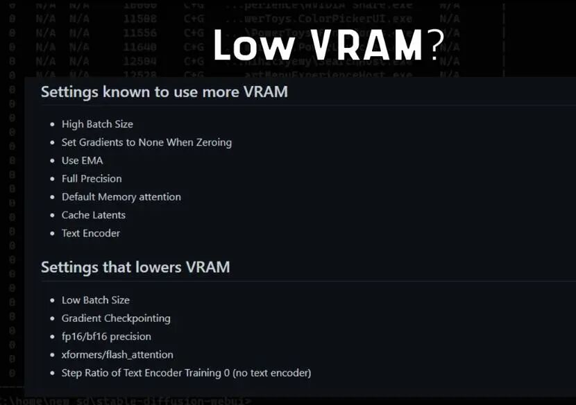 现在,如果你想要学习我的流程,但又缺乏强大的显卡,这也不会有问题,你可以调整自己的设置来降低模型训练对于显存的要求,不幸的是,我没有一个更低配的GPU来测试将设置降低到什么程度才能训练,不过,通过对于图片中的设定调整(可能需要全部关闭),你或许可以在低配电脑上训练。
