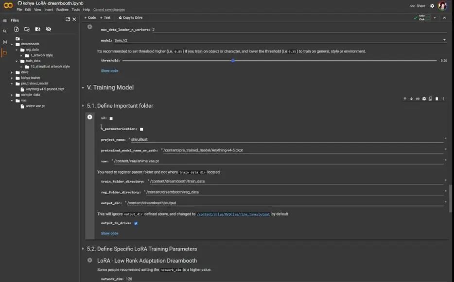 对于第二部分,我将使用谷歌Colab Notebook作为LoRA训练者,这里,我将使用自己探索的经验训练anything v4.5 pruned模型。