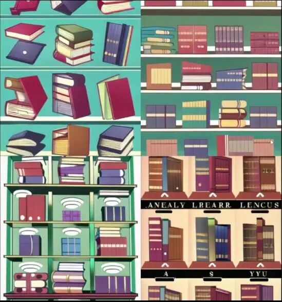 那么,换成室内场景是否可行呢?比如图书馆,我们就可以得到插画风格的图片。