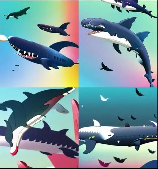 然后我们来测试一些非常随机的东西,比如韩剧《非常律师英禑》,她喜欢一直飞来飞去的鲸鱼,所以我们可以将指令修改为flying whales来看得到什么结果: