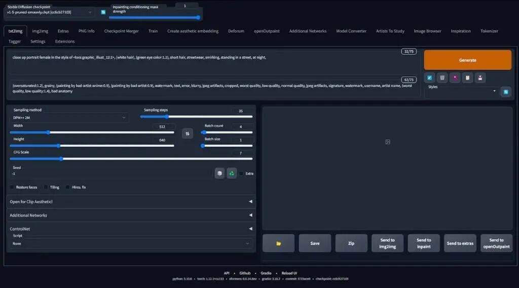 所以,我回到Stable Diffusion,然后用最终回合做一些生成测试。