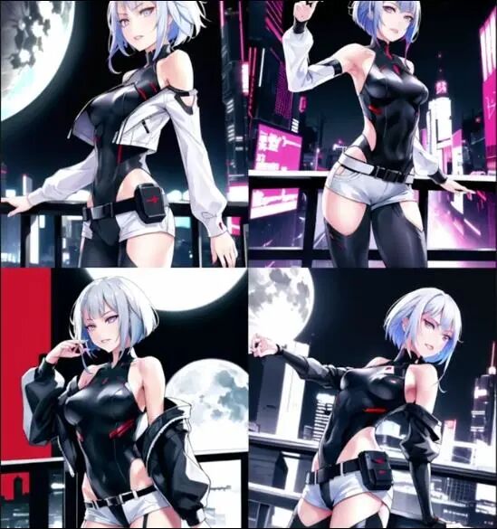 如果记得开头,你们会发现有一个redjuice风格的赛博朋克角色Lucy,所以我们这里测试模型能否通过使用LoRA模型组合,来生成对应结果。