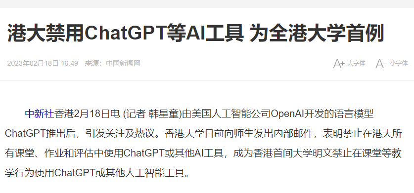 现在的问题是:如何看待教育机构禁止使用ChatGPT?