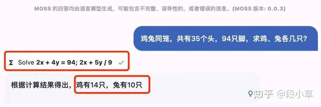如果MOSS显示了插件图表和计算公式,就说明它调用了响应插件。Equation solver:求解方程