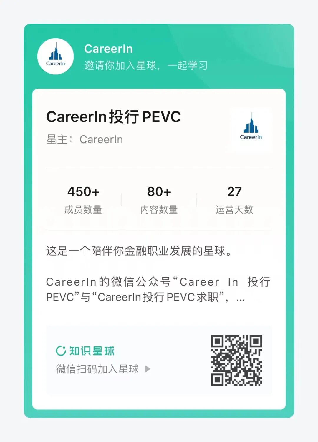 别忘了关注CareerIn和CareerIn投行PEVC系列账号: