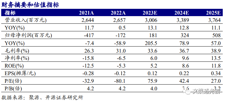 2022年公司实现营业收入26.57亿元(同比+0.47%),实现归母净利润-1.72亿元(亏损同比收窄2.45亿元),亏损主要系公司部分涉及线下终端销售以及体验的业务受宏观经济波动以及市场消费需求减弱等因素影响,未能实现预期经营业绩;海外婴童用品业务因海运价格费用高企,其利润贡献亦受到较大影响。2023Q1公司实现营业收入6.02亿元(同比-9.8%),实现归母净利润1667万元,(同比、环比均由亏转盈)。基于公司业绩及业务修复预期,我们上调2023-2024并新增2025年盈利预测,预计2023-2025年公司的归母净利润分别为1.81/3.24/5.08亿元(2023-2024前值为1.47/2.41亿元),对应EPS分别为0.12/0.22/0.34元,当前股价对应PE分别为75.9/42.4/27.0倍,维持“买入”评级。