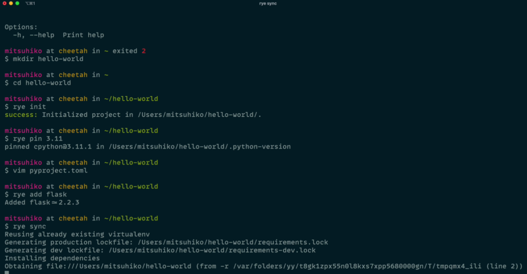 poetry/pip/pipenv/pyenv/venv/virtualenv/pdm/hatch 等同类工具的替代方案。他表示 Rye 是给自己打造的 “一站式” 工具,满足了他对 Python 的所有需求,包括安装和管理 Python 软件包、管理 pyproject.toml 文件、安装和卸载依赖项、在后台管理 virtualenvs,以及支持 monorepos 和全局工具安装。$ rye pin 3.11