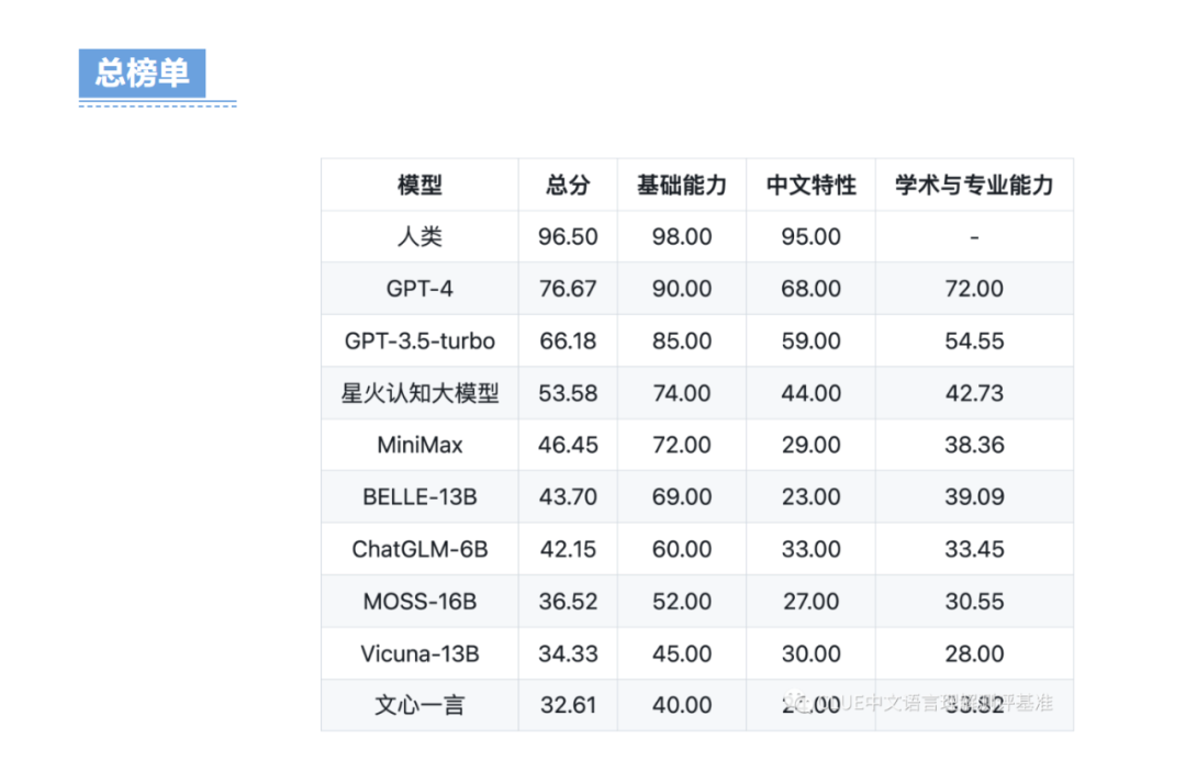 此外,另据2023年5月9日,中文通用大模型综合性评测基准SuperCLUE发布的报告显示,在包括基础能力测试、中文特性测试的中文通用大模型基准测评的总榜单当中,星火认知大模型的排名仅次于GPT-4及GPT-3.5-turbo,排名第三,同时在中文大模型当中排名第一。
