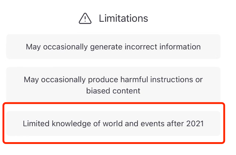 需要注意的是,这个数据库上面显示,它们对2021年以后发生的事情,了解有限。