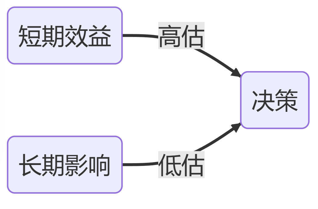 这个不等式表示了短期效益大于长期影响,即人们倾向于更关注和重视短期利益,而对长期影响的重要性进行低估。