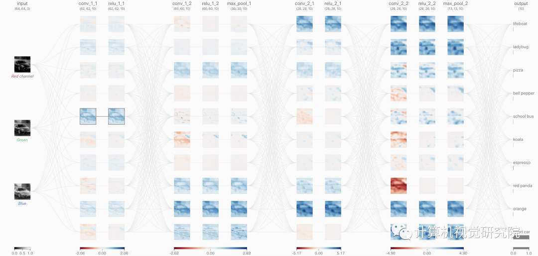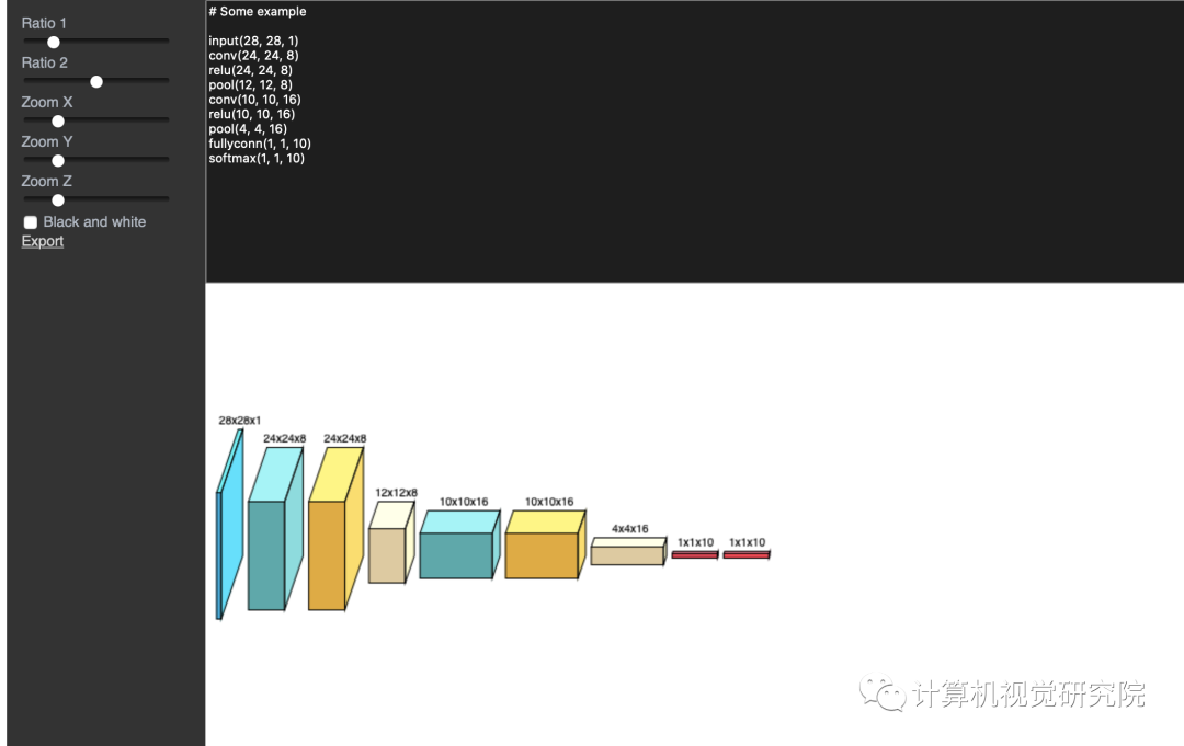 https://cbovar.github.io/ConvNetDraw/http://ethereon.github.io/netscope/#/editorVisual DL是百度开发的,基于echar和PaddlePaddle,支持PaddlePaddle,PyTorch和MXNet等主流框架。ps:这个是我最喜欢的,毕竟echar的渲染能力不错哈哈哈,可惜不支持caffe和tensorflow。https://github.com/PaddlePaddle/VisualDLhttps://github.com/HarisIqbal88/PlotNeuralNet其实还有很多可视化工具,但是今天我要说的是,训练过程的可视化,与TF的可视化类似,但是这个操作更加简便!这个工具到底把训练过程展示得多么详细?简单来说,项目作者已经给你做好了一个可以交互的界面,你只需要打开浏览器加载出这个界面就可以了。 使用 TensorFlow.js 加载预训练模型进行可视化效果,交互方面则使用 Svelte 作为框架并使用 D3.js 进行可视化。最终的成品即使对于完全不懂的新手来说,也没有使用门槛。下面我们来看一下具体的效果。