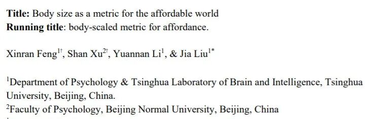 研究发现,基于物体可供性(affordance),即物体能够提供给生物体的所有可能动作,人类受试者可以将世界中不同大小物体分成两类,而划分这两类的标准恰好是以其身体尺寸为界的。