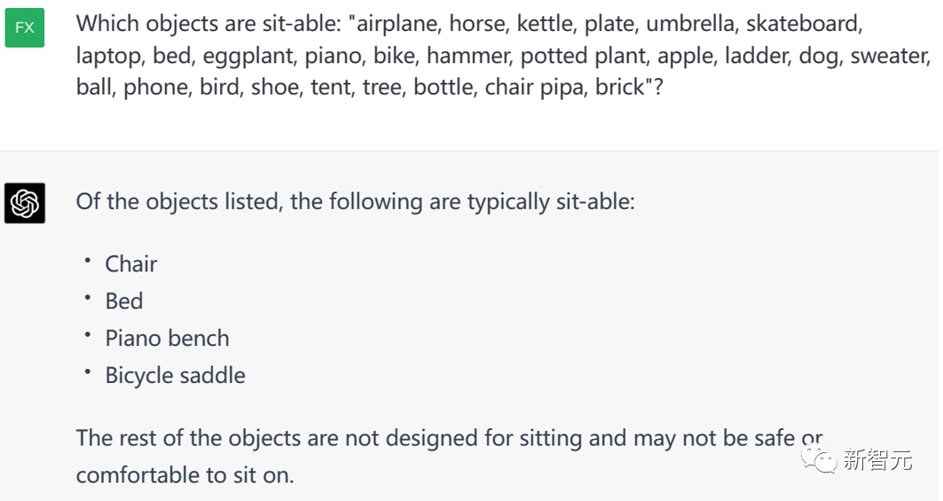 在另外一个方面, ChatGPT在应用身体图式方面的能力还不完全像人类,仍存在着差距——它的可供性边界还不像人类这样明显。