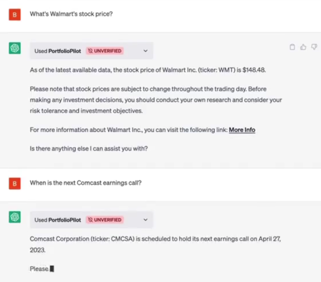 首个官方认证的“投资Plugin”Portfolio Pilot由AI软件企业家Alex Harmsen联合创建,早在5月初就发布,号称是首个官方认证的“投资Plugin”。