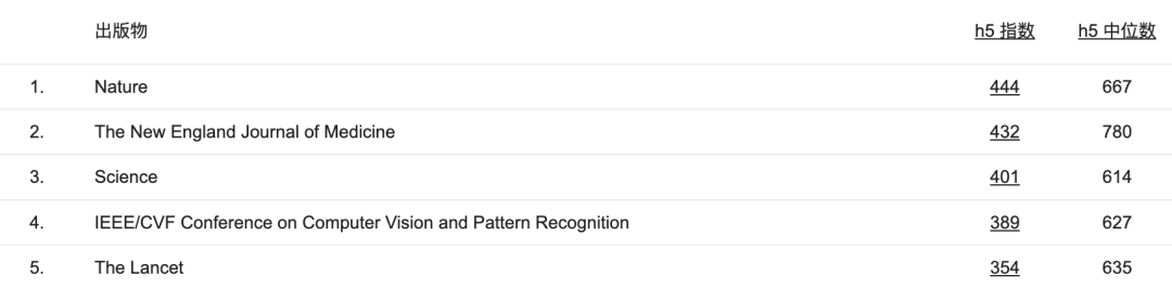 目前,CVPR的h5指数所有会议或出版物中位列第四,仅次于《自然》、《科学》和《新英格兰医学杂志》。